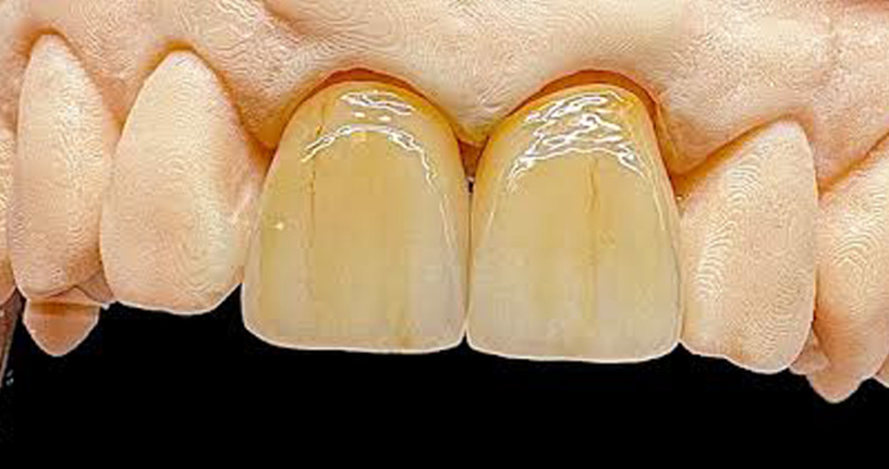 Monolitisk med målningsteknik alternativt med skiktat porslin.